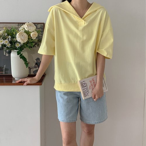네쥬 여성 여름 기본 오버핏 카라 박스티 반팔 맨투맨 티셔츠