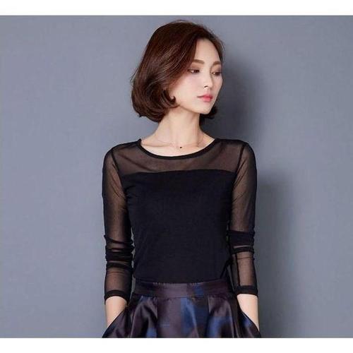 대박난날라리 3897 메쉬스판티 스판 시스루 섹시 여자망사티 이너 레이어드 긴팔 티셔츠 블라우스