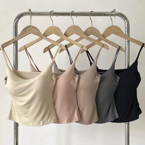[OFL0L287]여성 골지면 일체형 캡 이너웨어 크롭 끈 나시