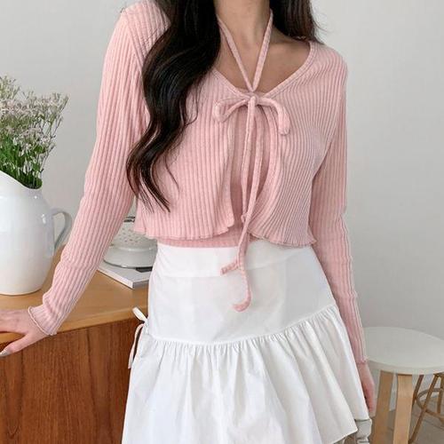 [다잇템]여자 숏가디건 이너탑 카디건 홀터네크 세트