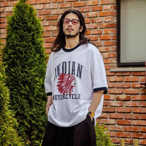 [러기드하우스]러기드하우스 인디언 모터사이클 배색 반팔티 화이트