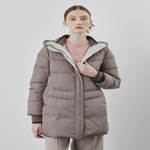 [데일리스트][세정_인디안여성복] 중기장 니트카라 후드다운MDBKD4WA1010_GN