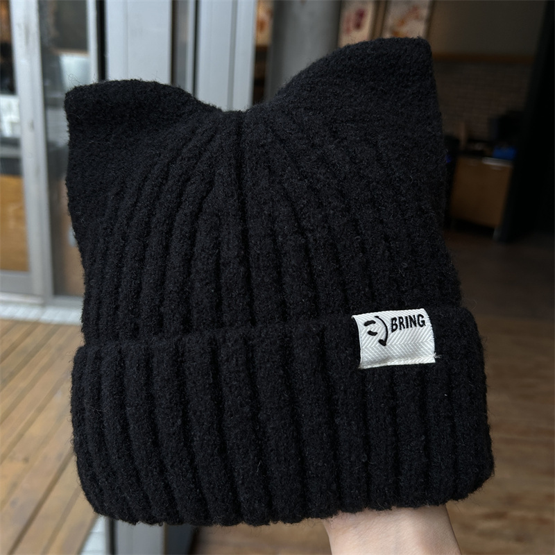 TEMU 귀여운 고양이 귀가 달린 여성용 스트레치 비니 - 추운 날씨에 적합한 부드럽고 가벼운 겨울 모자, 새해 이브 파티 액세서리, 손세탁 가능한 단색 디자인