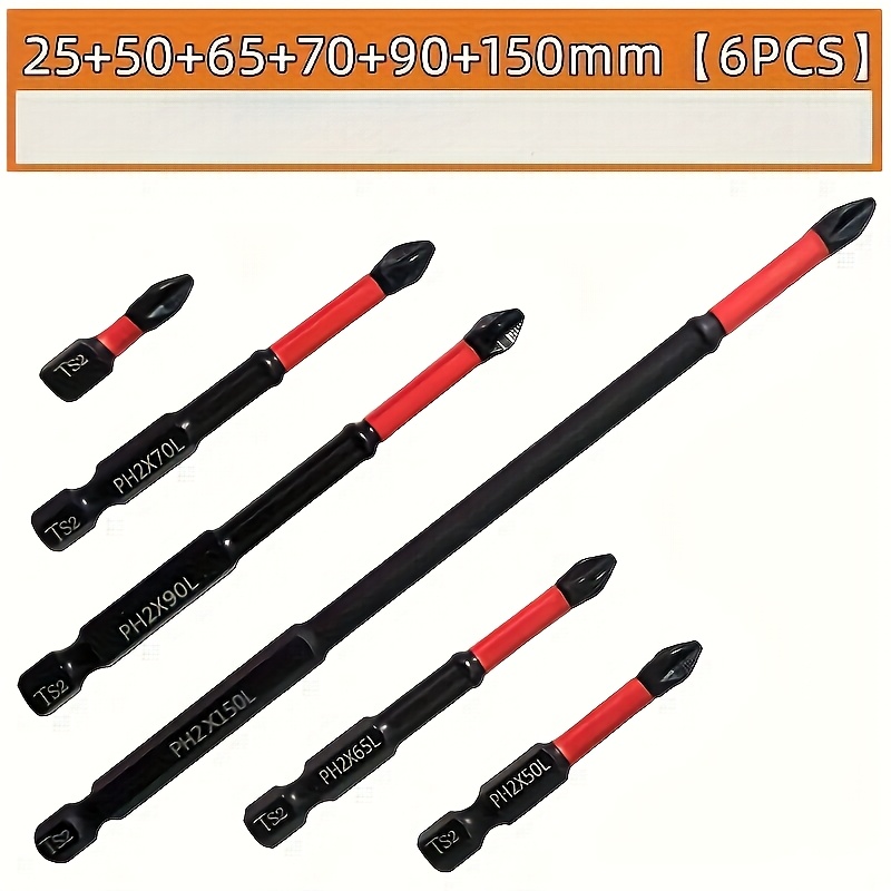 TEMU 6개입 자석 드릴 비트 세트 - 미끄럼 방지 팁, 고강도 S2 강철, 전동/수동 크로스 & 임팩트 드릴용, 목재, 벽돌, 콘크리트, 드라이월 드릴링용 자석 팁