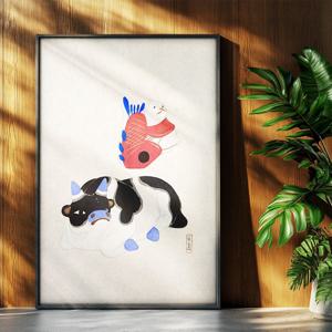 이자카야 포스터 일본 그림 사무라이 고양이 술집 인테리어 액자