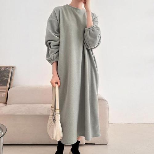 [다잇템][다잇템] 여자 민무늬 고무줄 플리스 큰사이즈 겨울임부복 롱원피스_23844620_588872
