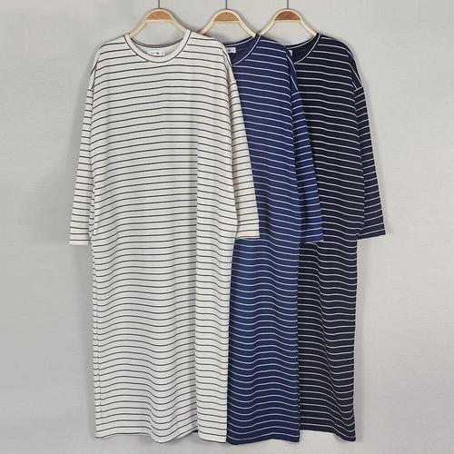 [다잇템]여성 롱슬리브 큰사이즈 줄무늬 임부롱원피스