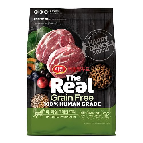 [하림펫푸드]더리얼 그레인프리 크런치 돼지고기 어덜트 1.6kg