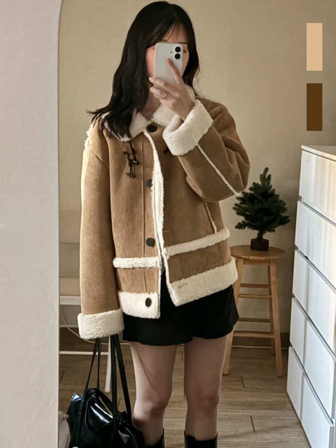 [플로브] [니트장갑증정] 싱글 포인트 스웨이드 무스탕_베이지