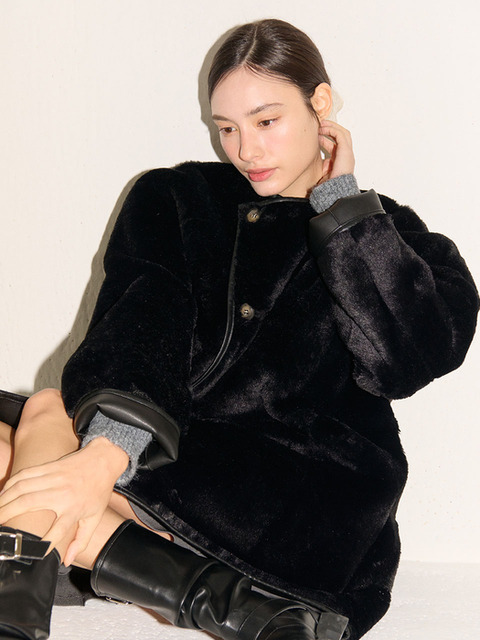 [플로브] [니트장갑증정] 리버시블 라운드 넥 무스탕_블랙