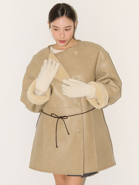 [플로브] [니트장갑증정] 리버시블 라운드 넥 무스탕_베이지