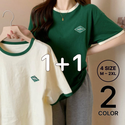 나바바 / 1 + 1상품 Happy 심플 배색 여성 반팔 티셔츠 NT670/ 베이지&그린