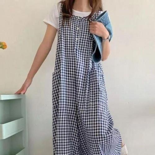[RGK3MS82]F36726 체크 면마 멜빵바지 점프슈트 와이드