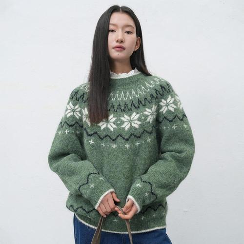 [제너럴아이디어]UNISEX 울 스노우 노르딕 풀오버 [PISTACHIO] / SBD4U05022-WOMAN