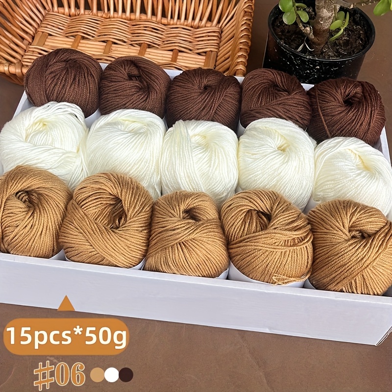 TEMU 750g, 15pcs 럭셔리 블렌드 얀 세트 - 삼색 조합 [약 750g/팩당 15볼], 소프트 라이트 베이지, 수제 얀, 담요, 스카프, 가디건, 숄 및 공예품에 적합|스카프