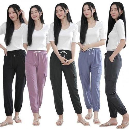 로브 여성 여름 아이스 밴딩 카고 조거 팬츠 빅사이즈