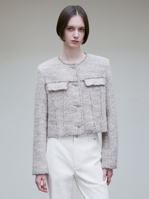 [리이] 울 블렌드 패치 포켓 트위드 자켓