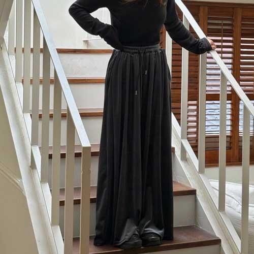 [릴룸]벨벳 맥시 기모 와이드 주름팬츠