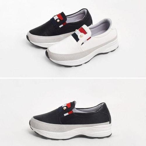 [에이치플러스몰]여성 밴딩 진주단추 스니커즈/여성스니커즈/가죽