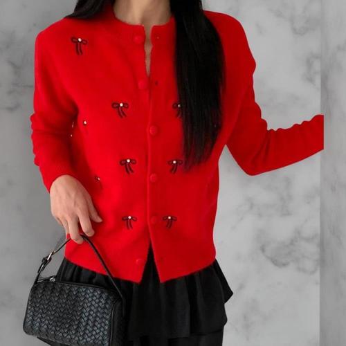 [다잇템_패션]여성 스웨터 진주단추 긴팔티 페미닌 가디건