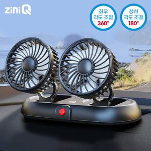 유니콘 지니큐 FC-200A 듀얼 차량용선풍기 5엽날개 3단풍량조절 상하 좌우 각도조절 USB타입 BLDC모터