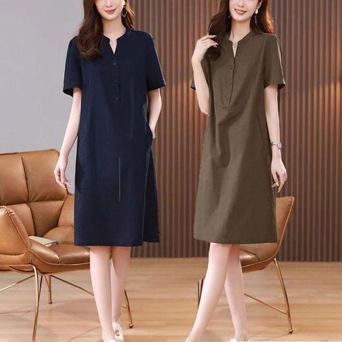 [셀러허브_여성트랜드패션]ONM 여자 여름 차이나넥 반팔 루즈핏 원피스 무릎기장