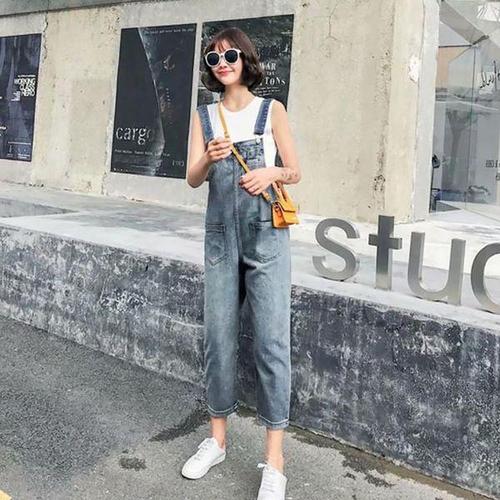 [에이치플러스몰]여자 진청 캐주얼 여행룩 청멜빵바지 데님 점프수트