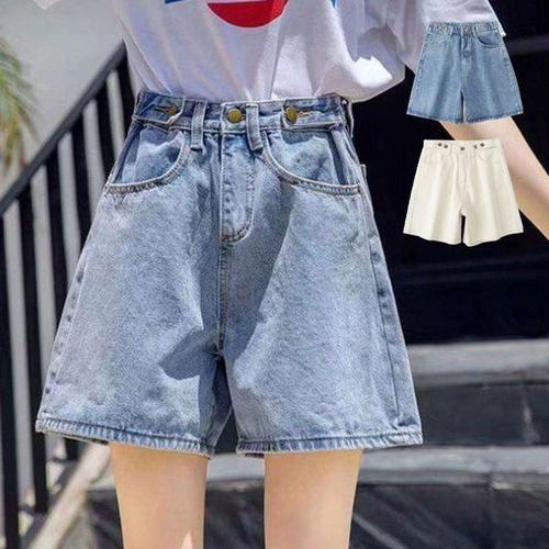 [에이치플러스몰]여성 캐주얼 데님 단추포인트 반바지