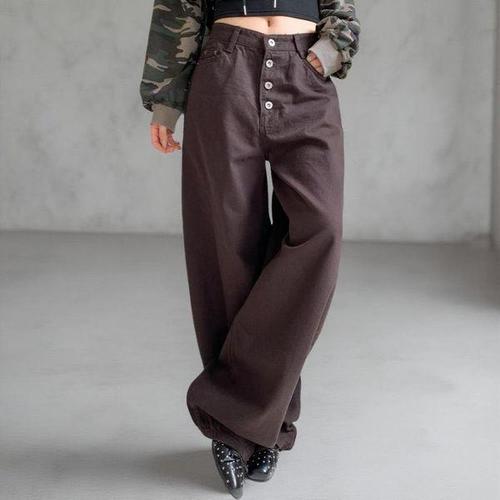 [다잇템]여성 단추 키치무드 넓은 면혼합 청바지