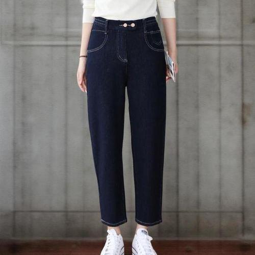 [신상오픈런]여성 투버튼 스티치 세미배기핏 빅사이즈 가을용 청바지