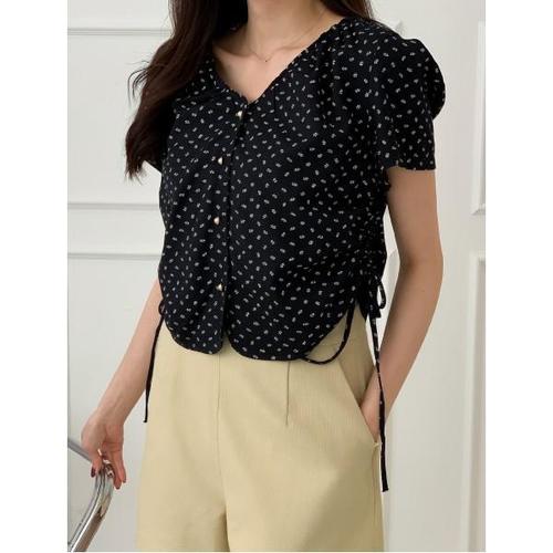 [위시드]러블리 플라워 린넨 반팔 블라우스 (WIBBBL032)