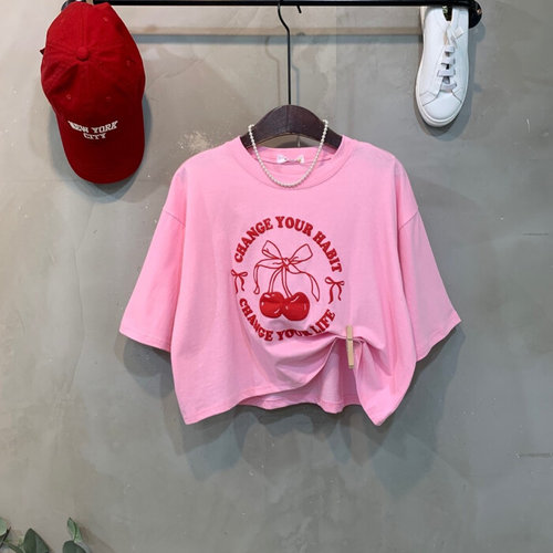 [셀러허브_여성트랜드패션]ONM 여성티셔츠 여자 여름 체리 프린팅 면 반팔 티셔