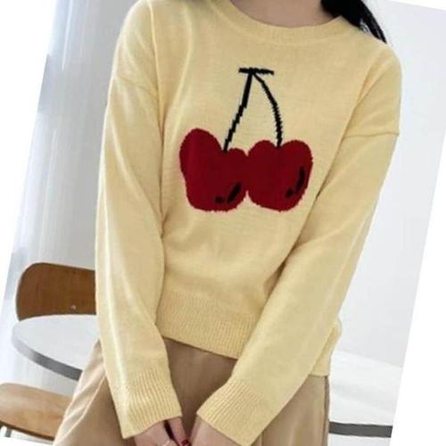 [셀러허브_여성트랜드패션]ONM 여자 라운드 체리 니트티 휴가룩 가을 FW