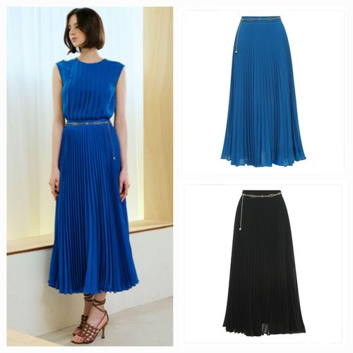 [미니멈]체인벨트 플리츠 롱스커트 (MYBAWS5240 BL)_IC