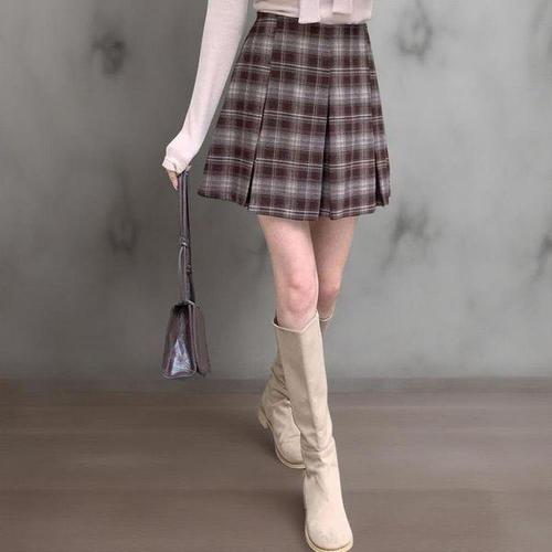모직 겨울 체크 미니스커트 가을 치마 하이웨스트
