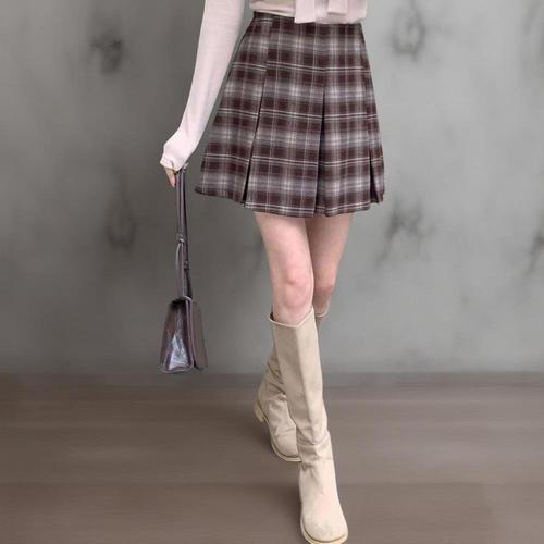 여성 치마 룩 가을 데이트 모직 숏 미니 스커트 체크