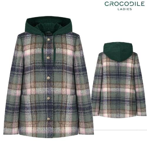 [크로커다일레이디](CLEWCT107) 탈부착 니트 후드 체크코트_GN