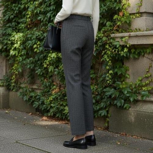 [옷자락] 여성 클래식 모직 잔체크 언발 뒷밴딩 슬랙스