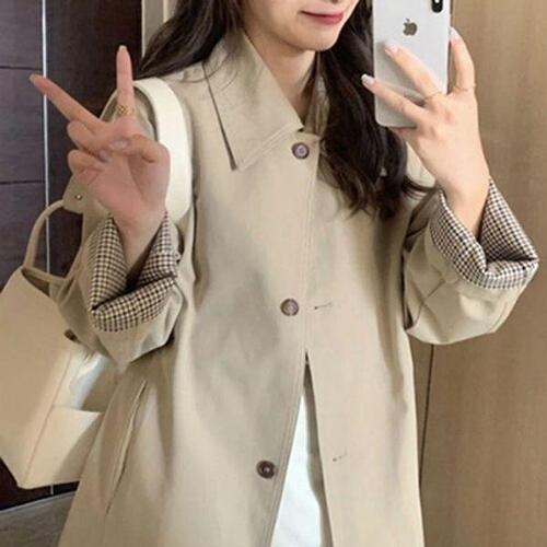 여성 데일룩 코트 트렌치 칼라 가을 안감 체크 캐주얼 힛템