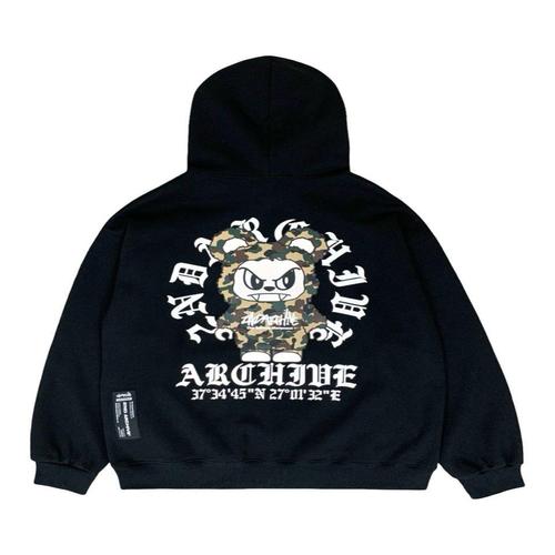 [피클]남여공용 엠블럼 카모 베어 백아트 후드 맨투맨 티셔츠