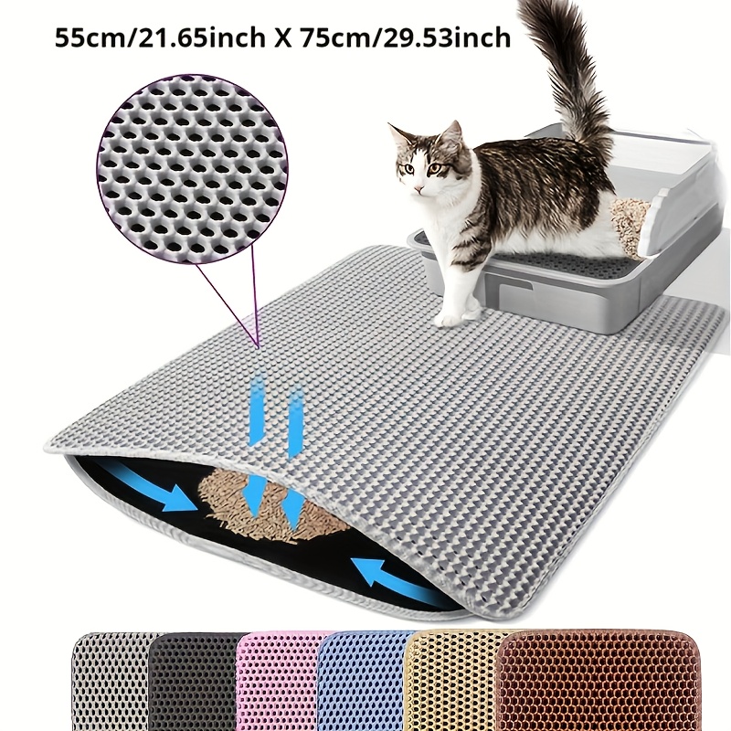 TEMU 엑스트라 라지 허니콤 더블 레이어 고양이 쓰레기 매트, 스플래시 방지 디자인, 세척 가능한 EVA 소재, 구멍이 있는 바닥 매트, 쉽게 청소 가능, 실내 고양이 및 고양이 쓰레기 상자에 적합한 다색 옵션 | 스플래시 방지 매트