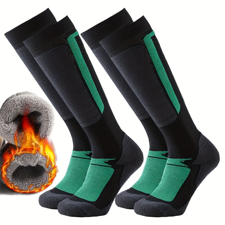TEMU 2/4/8켤레 겨울 따뜻한 보온 두꺼운 양말 | 남아 여아용 무릎까지 스노보드 스키 양말, 폴리에스터, 엘라스테인, 패턴, 니트 원단, 십 대용