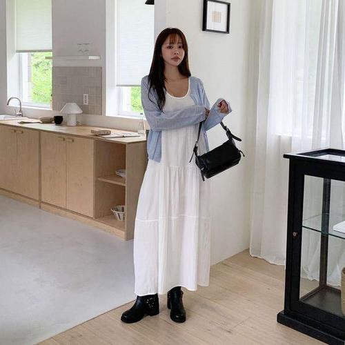 에르디테 / 오버핏 레이어드 멜빵 뷔스티에 민소매 캉캉 롱 원피