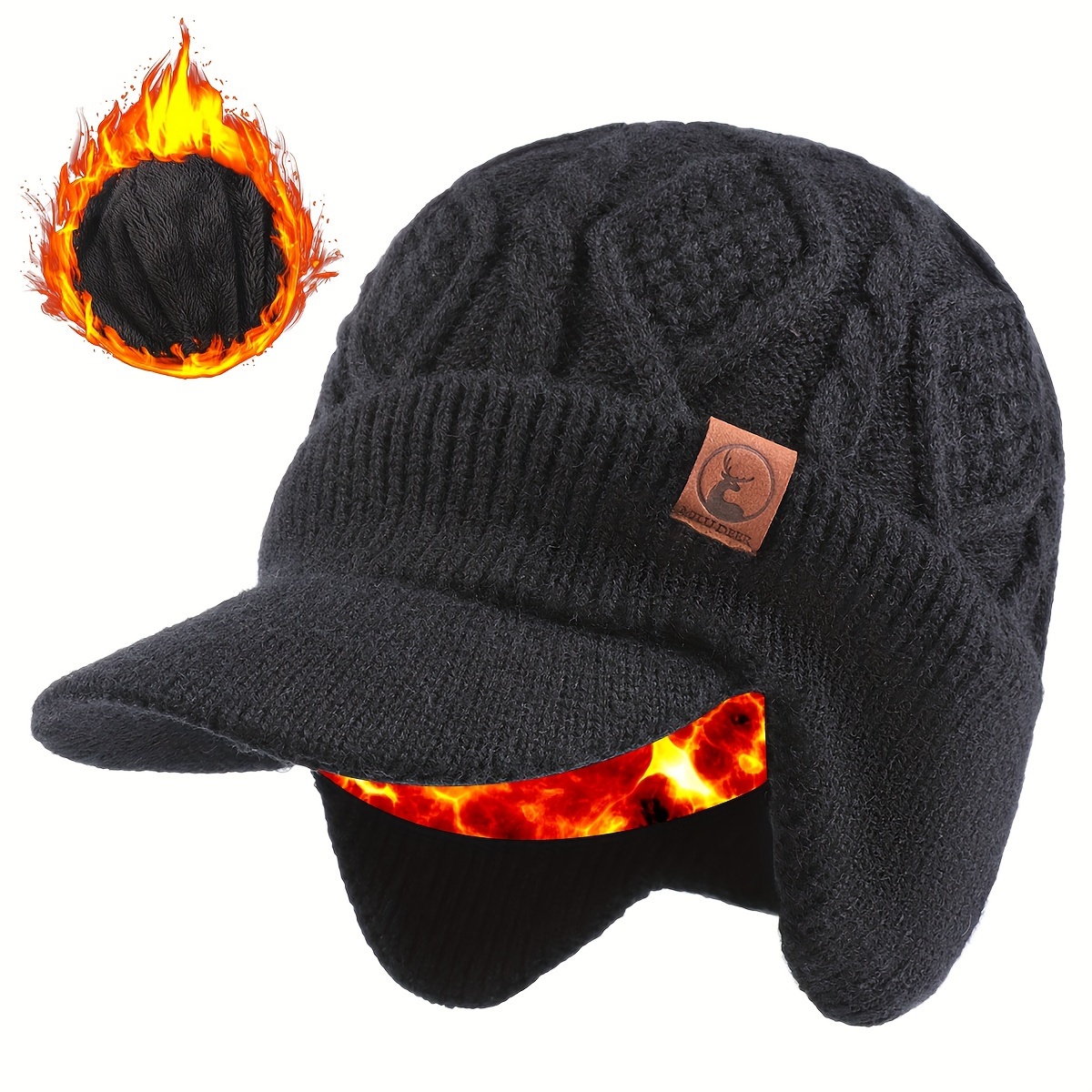 TEMU 1개 남성용 두꺼운 인조 가죽 트래퍼 모자, 인조 퍼 트림 - 방풍 및 귀마개 디자인, 눈 덮인 날씨용, 그를 위한 이상적인 선물, 겨울 모자|남자모자