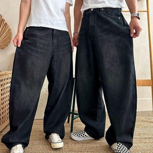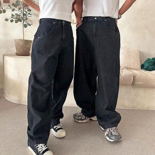 [다잇템][다잇템] 여자 남자 커브드 블랙진 커플팬츠 스트릿 와이드핏 청바지_22964471_588872