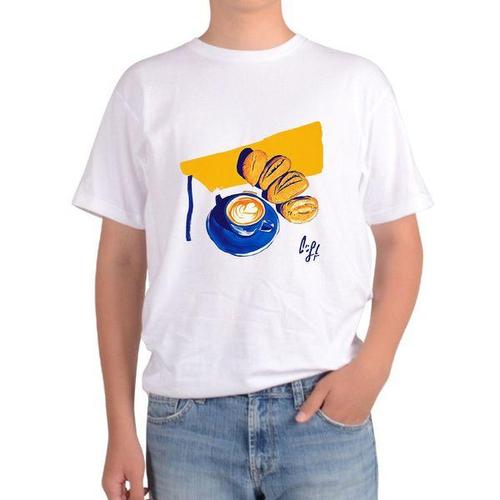 [에이치플러스몰]브런치 커피 바게뜨 빵 프린트티셔츠 라운드티