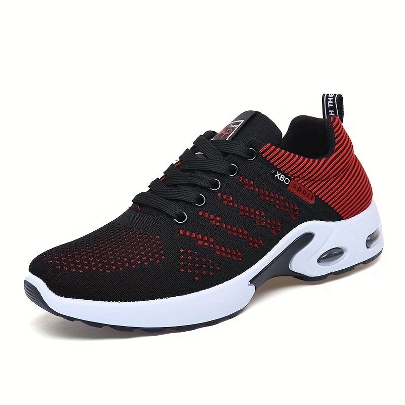 TEMU 남성용 경량 통기성 로우탑 캐주얼 스니커즈 - 미끄럼 방지 고무 밑창, 하이킹 및 일상 착용을 위한 사계절 편안함 - 회색/빨간 악센트|신발|남자운동화