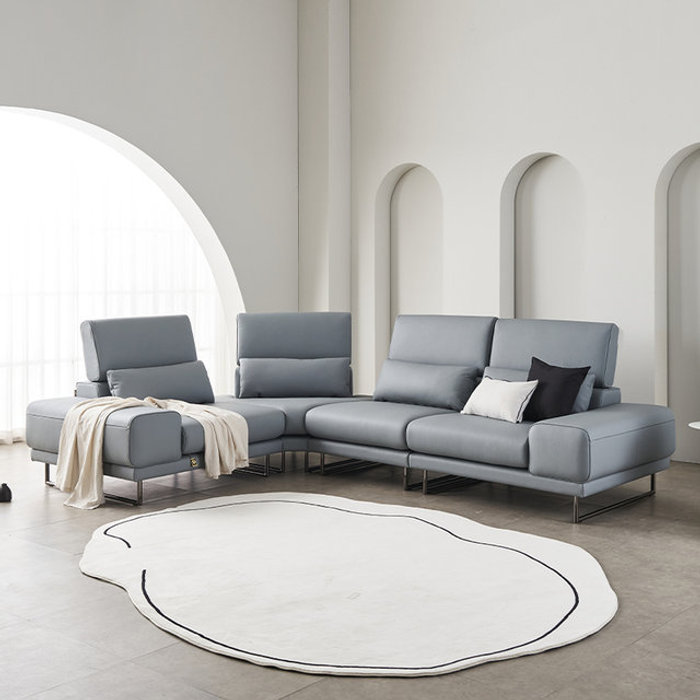 [다우닝] 엘리드 4인 코너 리프트업 전체 통가죽 소파