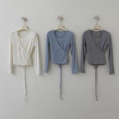 [다잇템][다잇템] 여성 롱슬리브 코디 드로우코드 랩 슬리브리스 스트랩 니트_22619092_588872