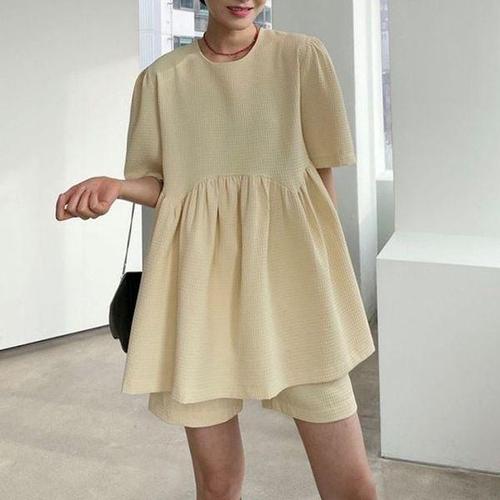 [에이치플러스몰]세련된스타일 시크 러플 탑 숏팬츠 코디세트